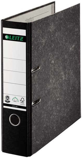 Deze ordner heeft een papieren omslag met gewolkt effect.