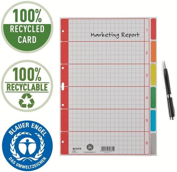 Tabbladen Leitz 4350 A4 4r karton 6dlg grijs 1 Stuk