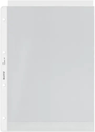Leitz Premium Showtas A4, 30% gerecycled plasticPremium showtassen met een heldere matte afwerking, ideaal voor dagelijks gebruik thuis, op kantoor of op school. Met de 4-gaats versterkte strip kunnen documenten gemakkelijk worden opgeborgen in ordners en ringbanden en worden ze beschermd tegen vocht, stof en vuil. Opent aan de bovenkant voor eenvoudige toegang tot documenten zonder dat je de ordner of ringband open hoeft te maken. Het copysafe en zuurvrije materiaal zorgt voor een langdurige bescherming van de documenten. Gemaakt van PP (polypropyleen) plastic met 30% pre-consumer content en 100% recyclebaar.• A4-showtas voor het beschermen, opbergen en presenteren van documenten thuis, op kantoor of op school• Gemaakt van 30% pre-consumer PP plastic, 100% recyclebaar• 4-gaats perforatiestrip voor het handig opbergen van documenten in ordners en ringbanden• Copysafe en zuurvrij materiaal zorgt voor langdurige bescherming van de documenten• Opent aan de bovenkant voor eenvoudige toegang tot documenten zonder dat je de ordner of ringband open hoeft te maken.• Materiaal met matte reliëfafwerking voorkomt vingerafdrukken of vetvlekken• Stevig polypropyleen van 130 micron zorgt ervoor dat de showtas steeds opnieuw kan worden gebruikt• Doos van 100 showtassen