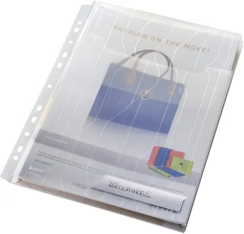 Flexibele zichtmap en showtas door unieke uitvouwbare perforatiestrip. Geschikt voor grote documenten en catalogi door 20 mm uitzetbare vouw aan onderzijde.