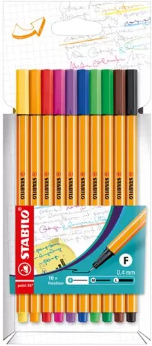 De fineliner STABILO point 88 in een etui à 10 kleuren