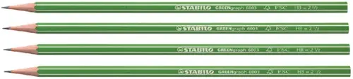 Het STABILO GREENgraph grafietpotlood is gemaakt van 100% duurzaam hout. De onbreekbare potloodkern en de grondstofbesparende kwaliteit van het potlood maken het zeskantige grafietpotlood tot het perfecte potlood voor thuis, op school of het werk.
