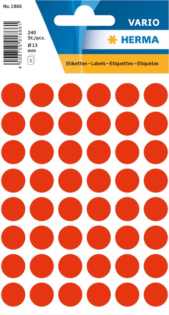 Etiket HERMA 1866 rond 12mm fluor rood 240st 5 Vel
