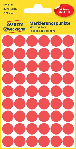 Etiket Avery 3141 rond 12mm rood 270st 5 Vel