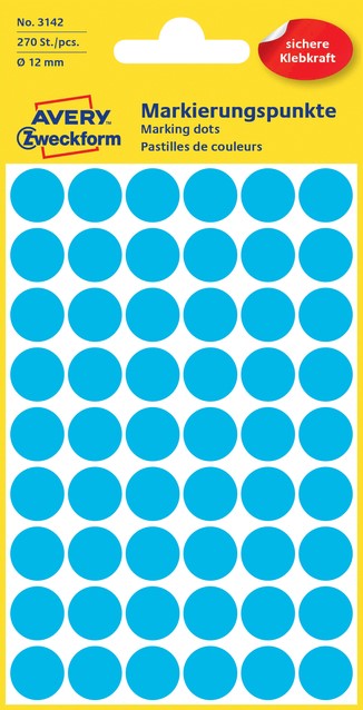 Etiket Avery 3142 rond 12mm blauw 270st 5 Vel