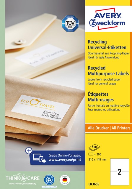Etiket Avery LR3655 210x148mm wit 200st 100 Vel