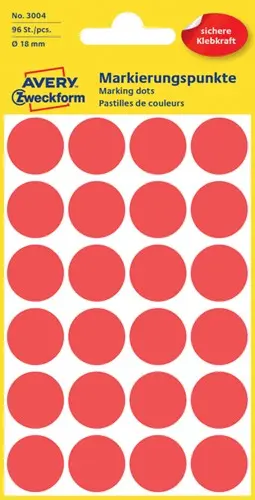 Etiket AZ 3004 rond 18mm rood 96stuks 4 Vel
