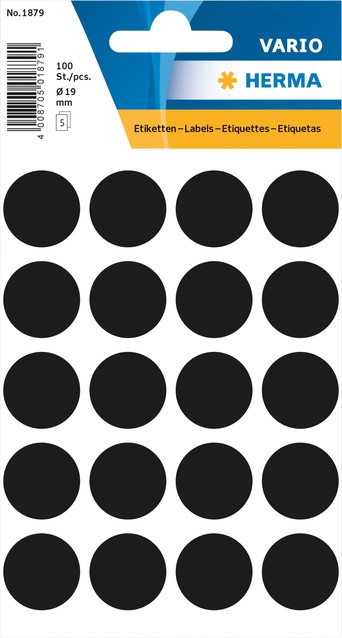 Etiket HERMA 1879 rond 19mm zwart 100st 5 Vel