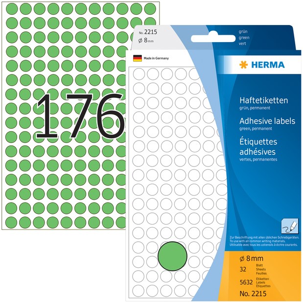 Etiket HERMA 2215 rond 8mm groen 5632st 32 Vel