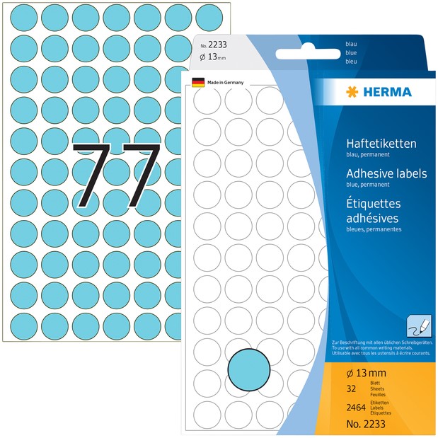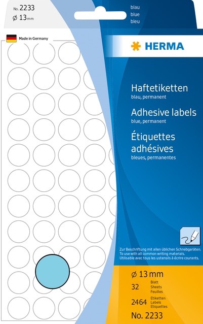 Etiket HERMA 2233 rond 13mm blauw 2464st 32 Vel