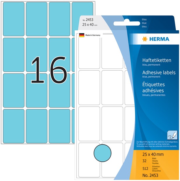 Etiket HERMA 2453 25x40mm blauw 512st 32 Vel