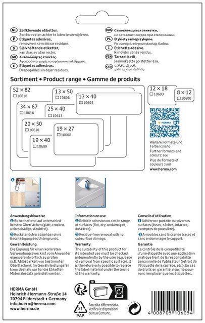 Etiket HERMA 10605 13x40mm verwijderbaar wit 672st 24 Vel