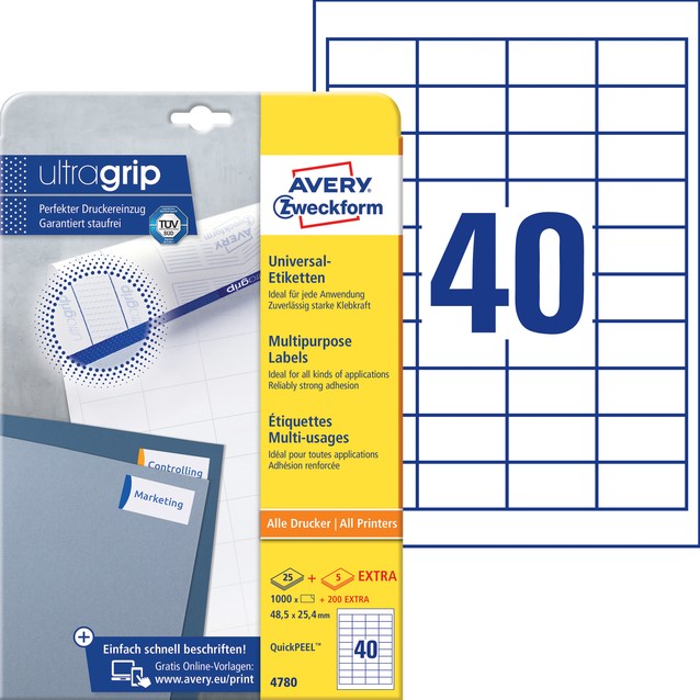 Etiket Avery 4780 48.5x25.4mm wit 1000st 25 Vel