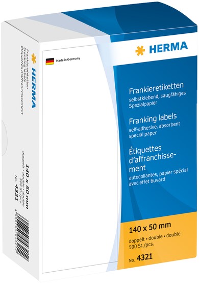 Frankeeretiket HERMA 4321 dubbel 140x50mm 500st 500 etiket