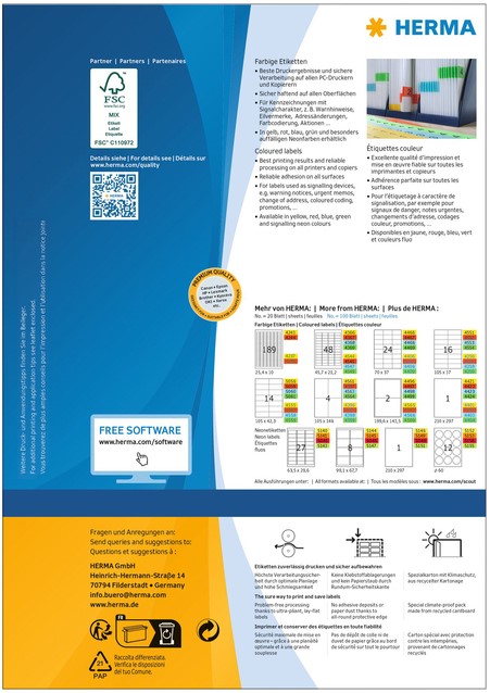 Zeer goede afdrukresultaten op alle laser- en inkjetprinters, kopieerapparaten, kleurenlaserprinters en kleurenkopieerapparaten.