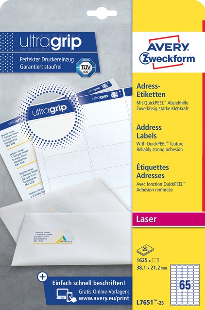 Etiket Avery L7651-25 38.1x21.2mm wit 1625st 25 Vel