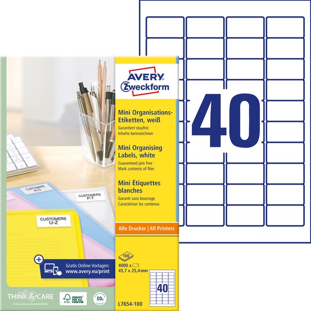 Etiket Avery L7654-100 45.7x25.4mm wit 4000st 100 Vel
