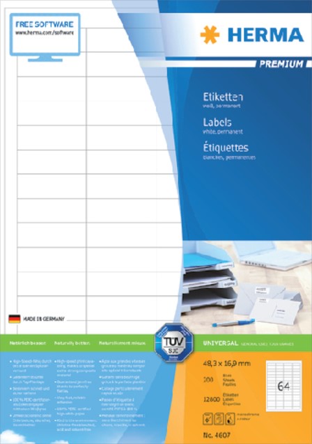 Etiket HERMA 4607 48.3x16.9mm prem wit 12800st 200 Vel