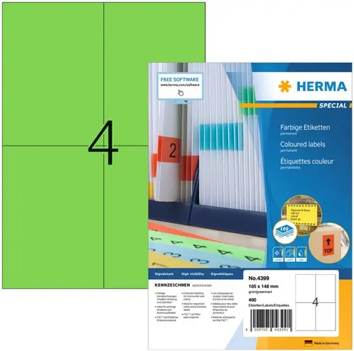 Etiket HERMA 4399 105x148mm A6 groen 400stuks 100 Vel