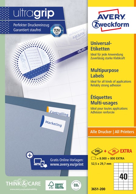 Etiket Avery 3651 52.5x29.7mm wit 8000st 200 Vel