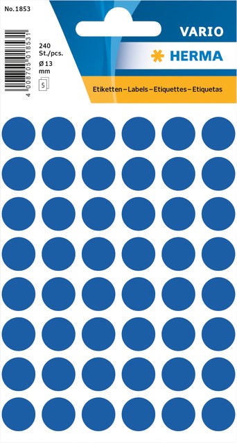 Etiket HERMA 1853 rond 13mm donkerblauw 240st 5 Vel