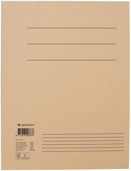 Door (leverproblemen) leveren we momenteel een alternatief zonder opdruk uit. Afbeelding wijkt af van de werkelijkheidKies voor duurzaamheid en kwaliteit met de dossiermap Quantore A4 250gr chamois. Deze stevige map is vervaardigd uit 250 grams gerecycled manillakarton en biedt optimale bescherming voor je documenten. Dankzij de drie stofkleppen blijven losse papieren netjes op hun plaats, ideaal voor gebruik in archieven, kantoren of thuis. De map voldoet aan de Blauwe Engel- en FSC-certificeringseisen, wat garant staat voor milieuvriendelijk materiaalgebruik. Met het A4-formaat is de map perfect afgestemd op standaarddocumenten. Verpakt per 5x10 stuks in een omdoos – klaar voor intensief gebruik.Kenmerken: