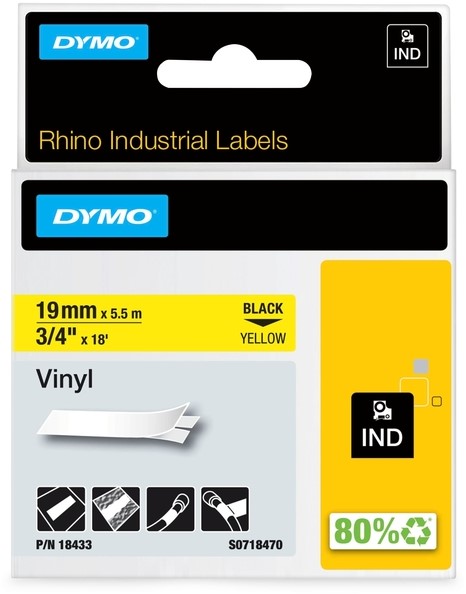 Labeltape Dymo Rhino industrieel vinyl 19mm geel 1 Stuk