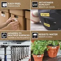 De tape ziet er hetzelfde uit als standaardtape maar biedt een krachtige permanente kleefkracht om een label voor altijd op zijn plaats te houden.