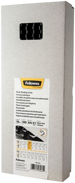 Bindrug Fellowes 10mm 21rings A4 zwart 100 Stuk