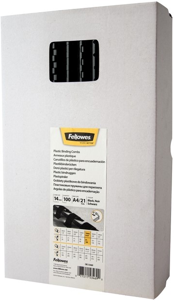 Bindrug Fellowes 14mm 21rings A4 zwart 100 Stuk