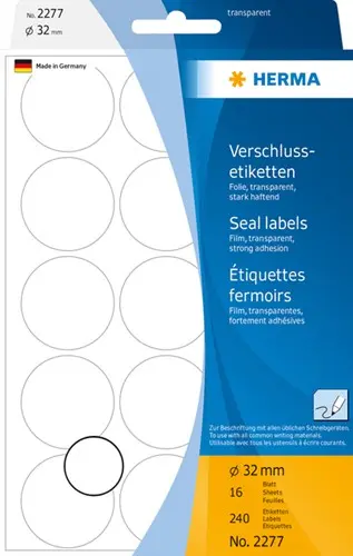 Etiket HERMA 2277 rond 32mm transparant 240st 16 Vel