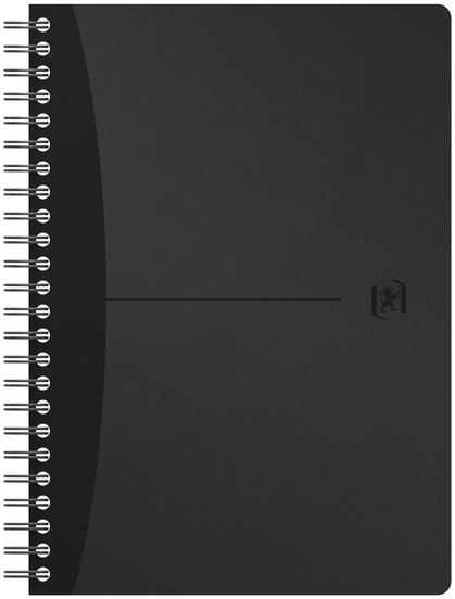 Zwarte geplastificeerde dubbelspiraal binding om het notebook geheel plat open te leggen voor een maximaal comfort.
