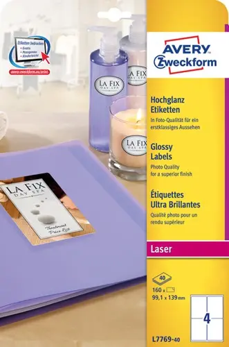 Etiket Avery L7769-40 99.1x139mm glans wt 160st 40 Vel
