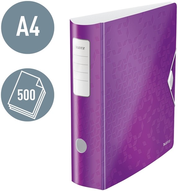 Ordner Leitz Wow 180° gelamineerd 80mm A4 paars 1 Stuk