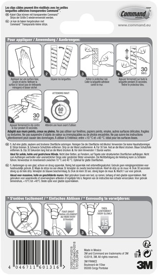 Deze kabelklemmen laten geen plakkerige kleeflaag achter. Dankzij de Command™ verwijderbare kleeftechnologie met stretch-release blijven ze stevig zitten en kun je ze toch verwijderen zonder sporen of lijmresten achter te laten.