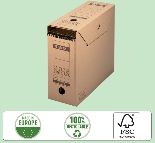 Hoogste kwaliteit golfkarton maakt de archiefdoos sterk en stabiel, maar ook licht 100% recyclebaar product, FSC® gecertificeerd.