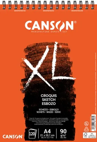 Aan de korte zijde gespiraleerd album Canson XL Croquis is een licht, ivoorkleurig papier dat speciaal ontwikkeld werd voor het snelle schetsen, ontwerpen en voorstudies.