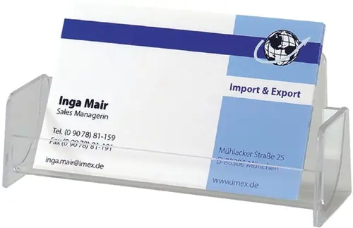 Of het nu op de beurs, in een showroom of op de adviesbalie is - in deze houder voor visitekaartjes presenteert u uw visitekaartjes opvallend en goed gesorteerd.