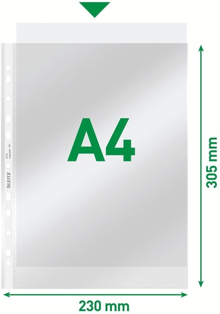 Opening aan bovenzijde voor eenvoudig uitnemen van papieren zonder ordner of ringband te openen.
