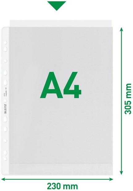 Eersteklas showtassen met een heldere matte afwerking, ideaal voor dagelijks gebruik thuis, op kantoor of op school. Met de 11-gaats versterkte strip kunnen documenten gemakkelijk worden opgeborgen in ordners en ringbanden en worden ze beschermd tegen vocht, stof en vuil. Opent aan de bovenkant voor eenvoudige toegang tot documenten zonder dat je de ordner of ringband open hoeft te maken. Het copysafe en zuurvrije materiaal zorgt voor een langdurige bescherming van de documenten. Gemaakt van 30% pre-consumer PP plastic, 100% recyclebaar.