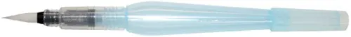 Aquash brush. Pen met sterke niet vervormbare penseelpunt. Het transparante handvat is tevens waterreservoir. Geen apart waterbakje zodat er overal en zelfs onderweg in de auto, bus of trein mee gewerkt kan worden. Inhoud waterreservoir 10ml. Nieuw geleidesysteem zorgt ervoor dat, afhankelijk van het indrukken van de houder, de penseelpunt exact de gewenste watertoevoer krijgt. Gemakkelijk te reinigen. Penpunt: Breed
