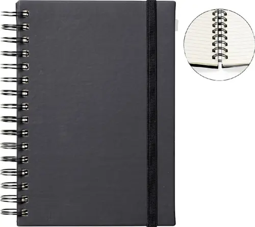 Type: notitieboek met spiraal en harde kaft.
