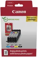 Inktcartridge Canon CLI-581 zwart + 3 kleuren 4 Stuk