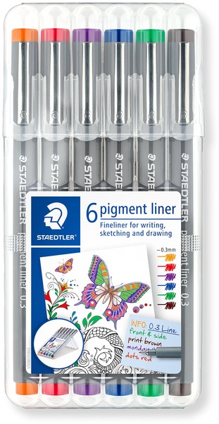 Fineliner Staedtler pigment 308 0.3mm 6 st ass 6 Stuk
