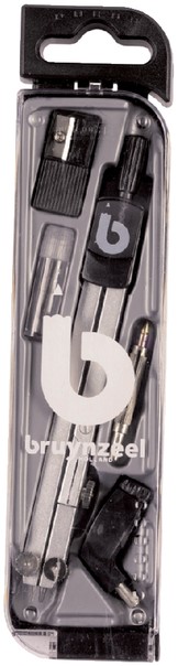 5-Delige passerset inclusief slijper, navulling en handige opzetstukjes waardoor je cirkels kan trekken met je eigen pen/stift.