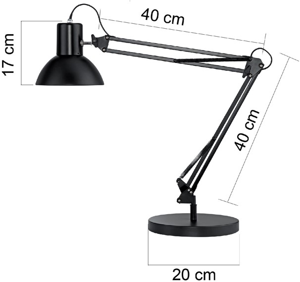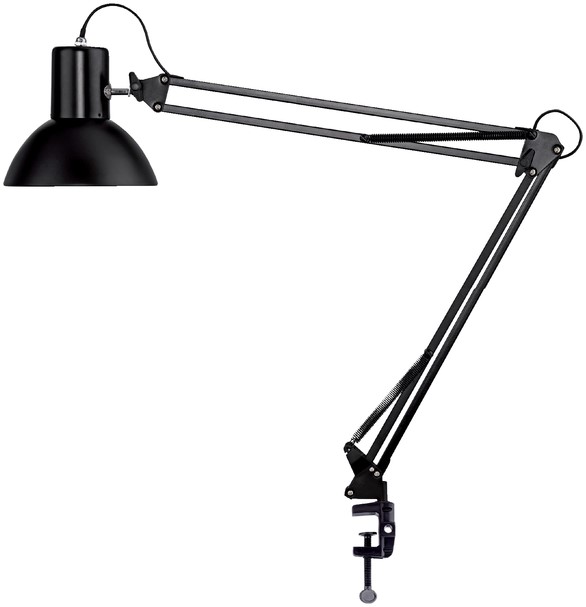 Deze lamp wordt geleverd met tafelklem en voet Ø200mm.