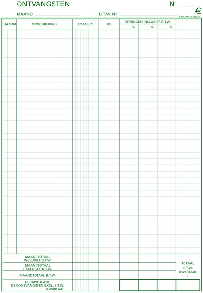 In het ontvangstenboek kan men de ontvangsten chronoligisch registreren (inkomsten) en deze aan een derde partij (boekhouder, accountant) geven met behoud van een kopie.
