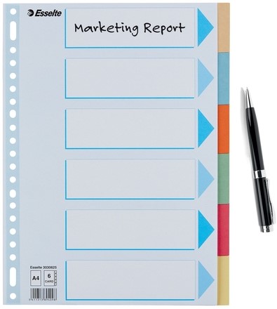 Tabbladen Esselte Stand A4 6dlg karton 11r ass 1 Set