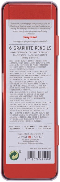 Het blik bevat 6 hardheden: HB, 1B, 2B, 4B, 6B, 8B.