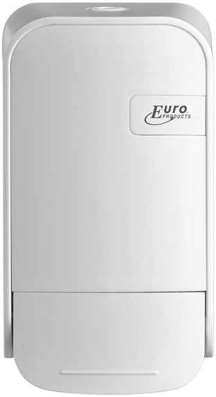 De dispenser heeft een eenvoudig drukknopsysteem waardoor gedoseerd zeep wordt verbruikt.